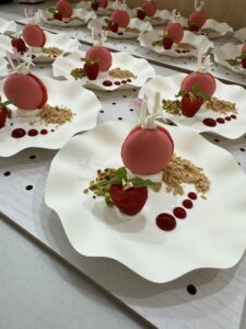 可愛らしいマカロンとラズベリーのデザートに皆様大喜び。