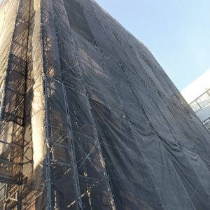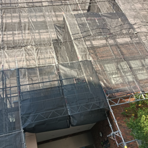 外壁工事完了後、館内の最終調整や足場解体を順次実施し、