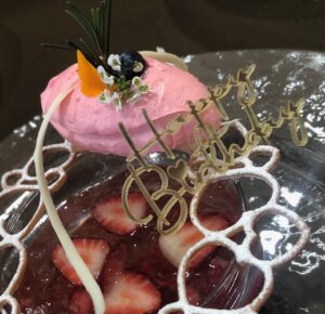 ショコラのコッタとレモンとライム風味のジュレ ~ラングドシャと苺のシャンティ添え~