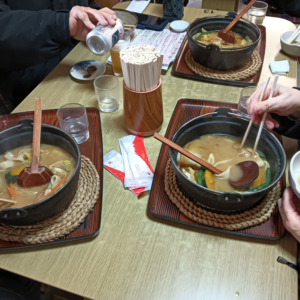 お昼はもちろん、山梨の名物「ほうとう鍋」。身体が温まり、お客様にも大好評でした。
