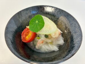 ~①新玉ねぎとフルーツトマト 桜エビのレモン和え~
