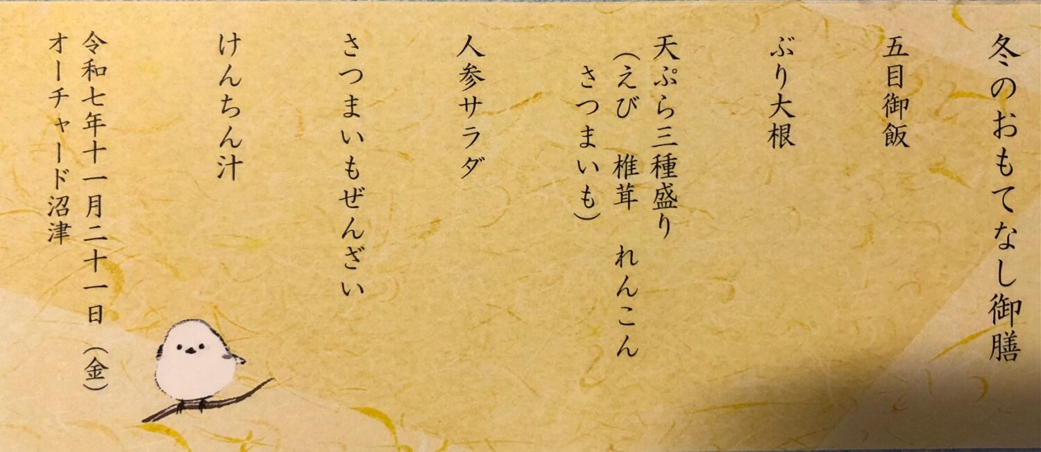 ~厨房フロアからのお便り デイサービス「冬のおもてなし御膳」~ Gallery ~厨房フロアからのお便り デイサービス「冬のおもてなし御膳」~ イベント ~厨房フロアからのお便り デイサービス「冬のおもてなし御膳」~ 11月21日(金)に、毎月1回開催される [...] numazu 2025-11-25T06:59:49+00:00 2025/11/22|イベント| 続きを読む